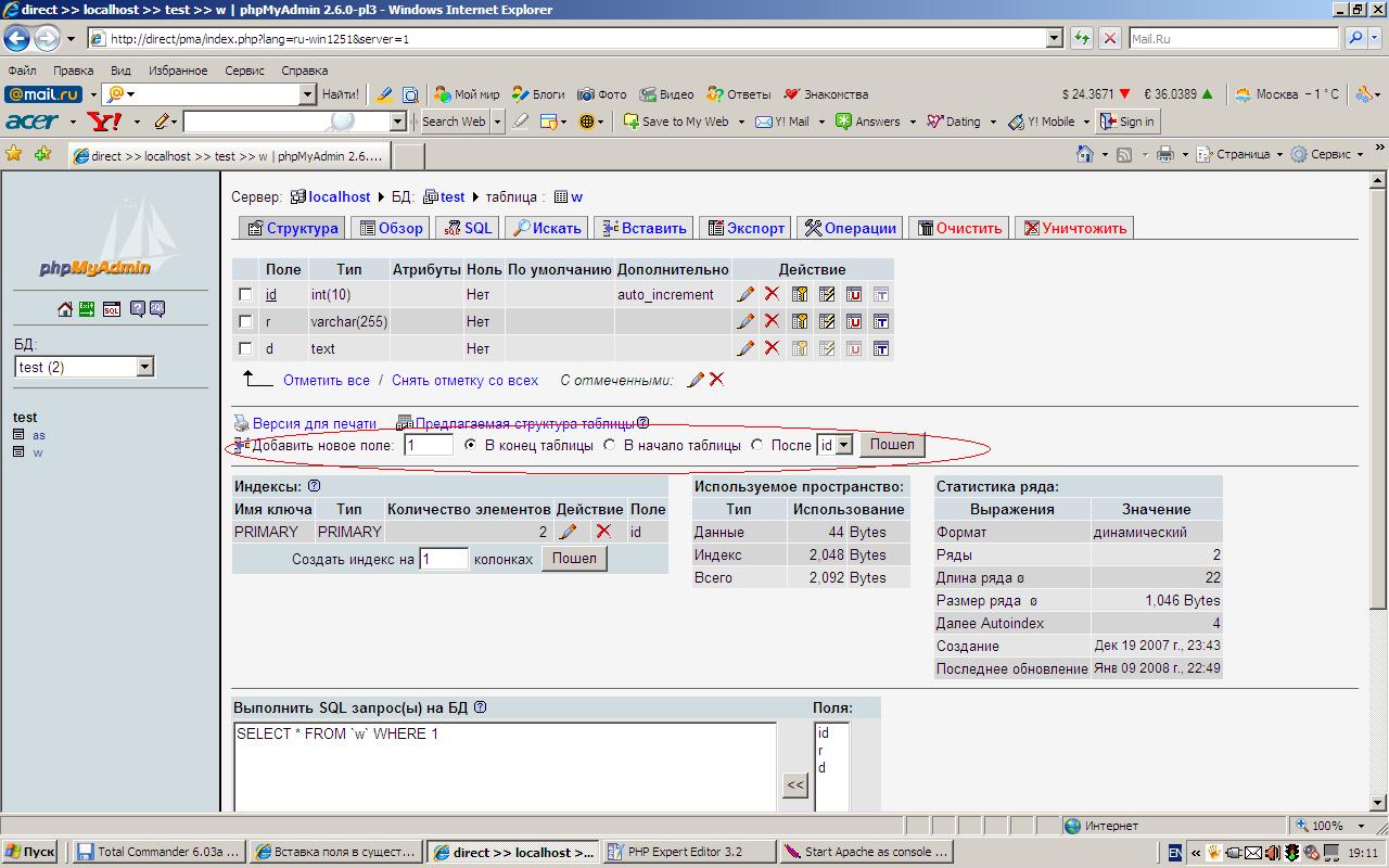 тема: Вставка поля в существующую таблицу